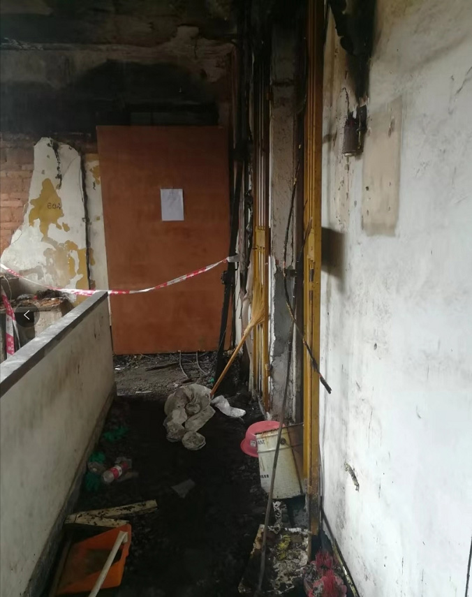 記者走訪現(xiàn)場發(fā)現(xiàn),這個(gè)小區(qū)的居民樓已經(jīng)比較老舊,樓道內(nèi)的消防設(shè)施也積滿灰塵,已經(jīng)很久沒有更換或者維護(hù)過了。不僅如此,消防設(shè)施里面還堆滿的廢紙盒,鞋子,報(bào)紙等許多雜物,墻上的電線電纜也已經(jīng)老化,破損。